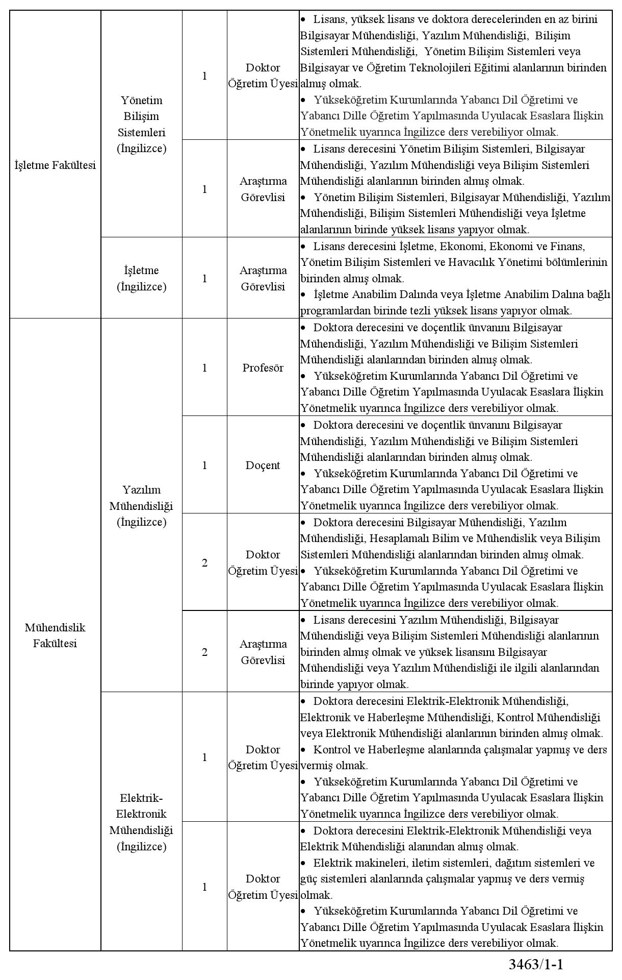 Üniversitemize 2547 sayılı Yükseköğretim Kanunu, Vakıf Yükseköğretim Kurumları Yönetmeliği, Öğretim Üyeliğine Yükseltilme ve Atanma Yönetmeliği ile ilgili diğer mevzuat çerçevesinde aşağıda nitelikleri belirtilen kadrolara tam zamanlı statüde öğretim elemanı alınacaktır.
