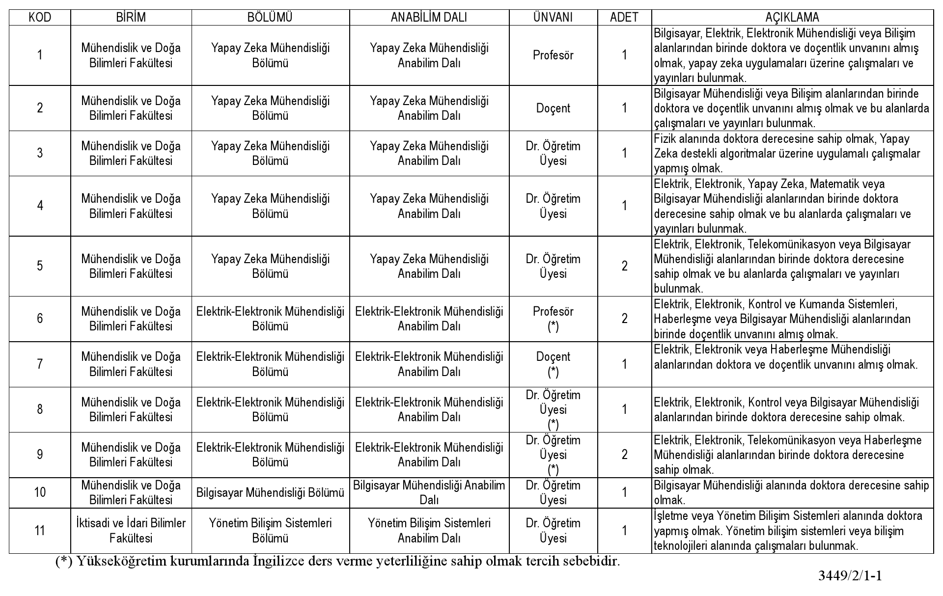Üniversitemiz gerekli durumlarda ilan dahil işe alım sürecinin her aşamasında iptal ve/veya değişiklik yapma hakkına sahiptir ve web sitemiz üzerinden yapılacak duyurular tebligat yerine geçecektir.