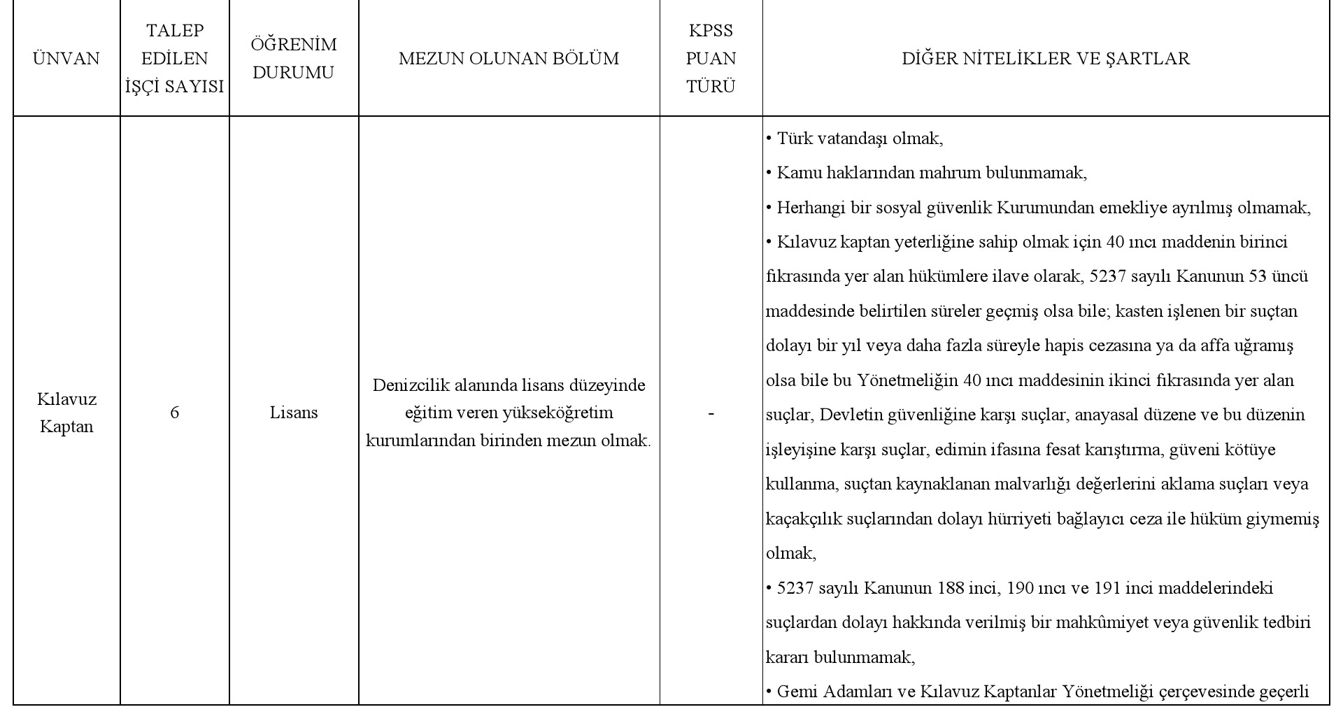 .Mesleki bilgi ve Yeterliliğin ölçülmesine ilişkin konular (40 Puan) olmak üzere toplamda 100 tam puan üzerinden yapılır. Sınavda başarılı sayılmak için sınav kurulu üyelerince verilen puanların aritmetik ortalamasının en az 60 olması şarttır. Adayların atamaya esas başarı puanı; Kurum tarafından yapılan sözlü sınav puanı ile KPSS puanının aritmetik ortalaması alınmak suretiyle belirlenecek ve kurumun internet sitesinde ilan edilecektir. KPSS şartı aranmaksızın ilan edilen Kılavuz Kaptan ünvanında adaylar ve KPSS'den muaf öncelikli adayların sınavda başarılı sayılması için sözlü sınavda kurul üyelerince verilen puanların aritmetik ortalamasının en az 60 olması şarttır. Bu adaylar için sözlü sınav (mülakat) sonucu atanmaya esas başarı puanını oluşturur. En yüksek başarı puanından başlamak üzere atama yapılacak kadro sayısı kadar asıl aday ve asıl aday sayısı kadar da yedek aday belirlenecektir. Kılavuz Kaptan ünvanında adayların atanmaya esas başarı puanlarının aynı olması halinde Kılavuz Kaptan yeterlilik belgesinin eskilik tarihi dikkate alınacaktır. Asıl ve yedek aday listeleri Kuruluşumuz internet sitesinden ilan edilecek ve listede yer alan adaylara ayrıca yazılı tebligat yapılmayacaktır.
