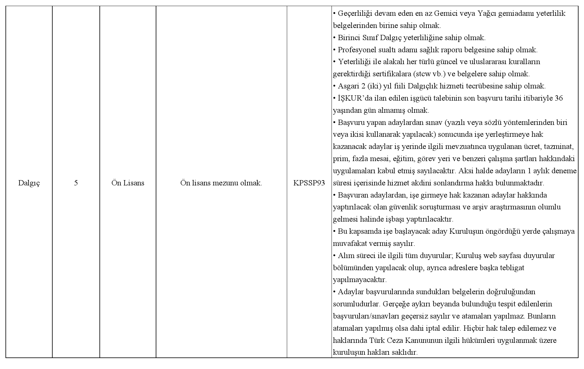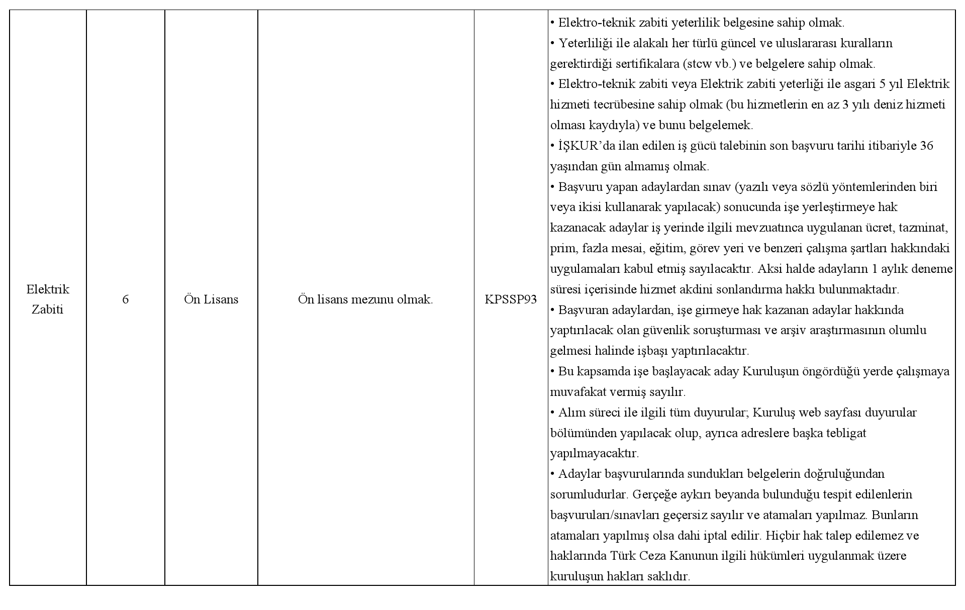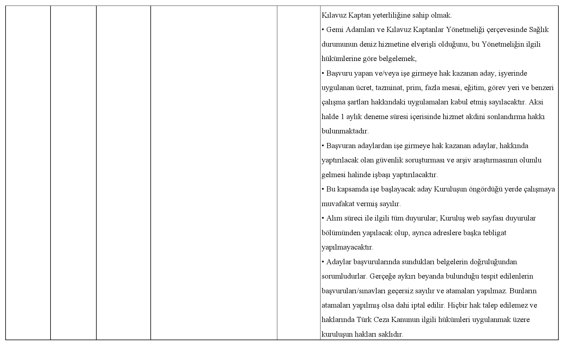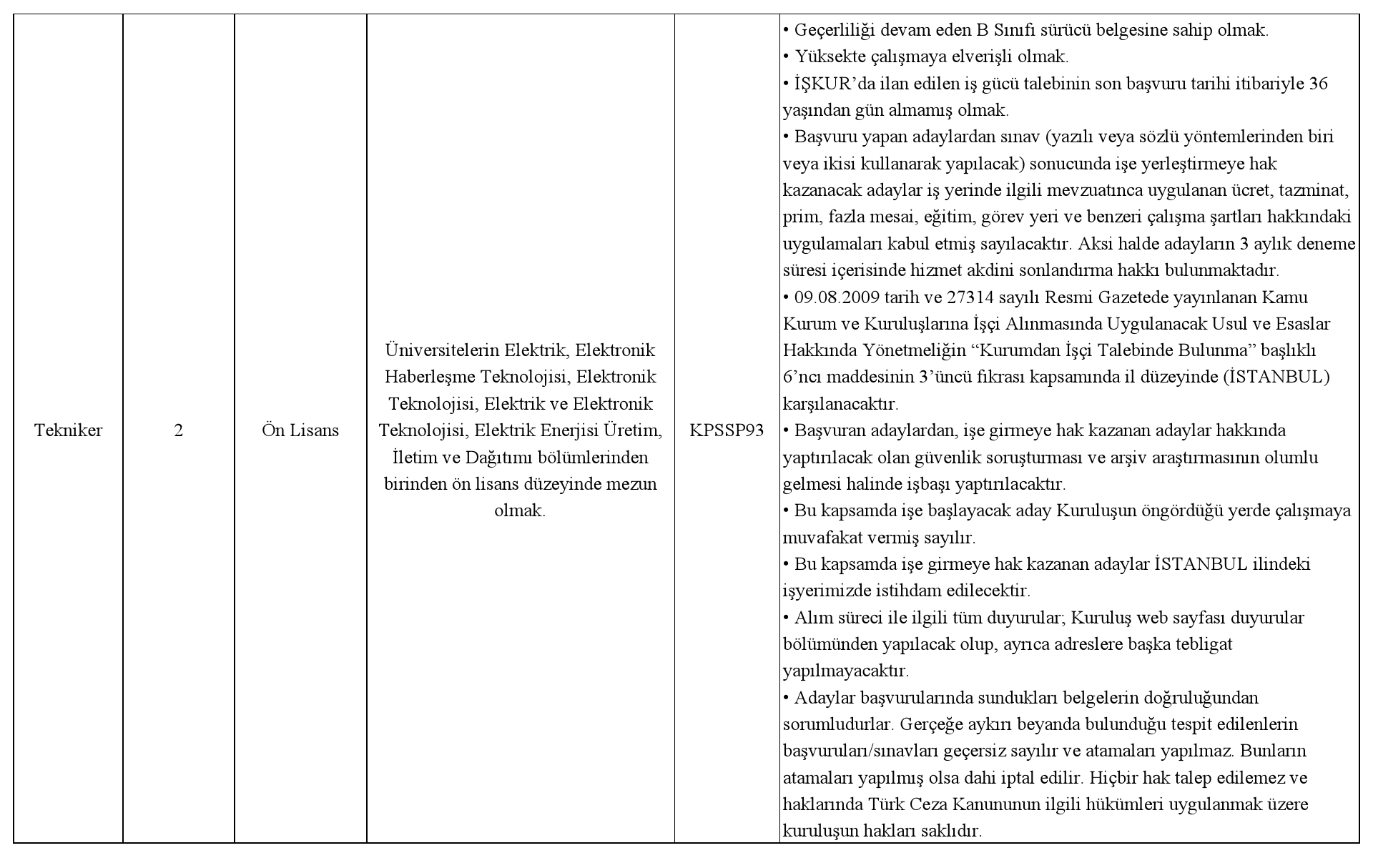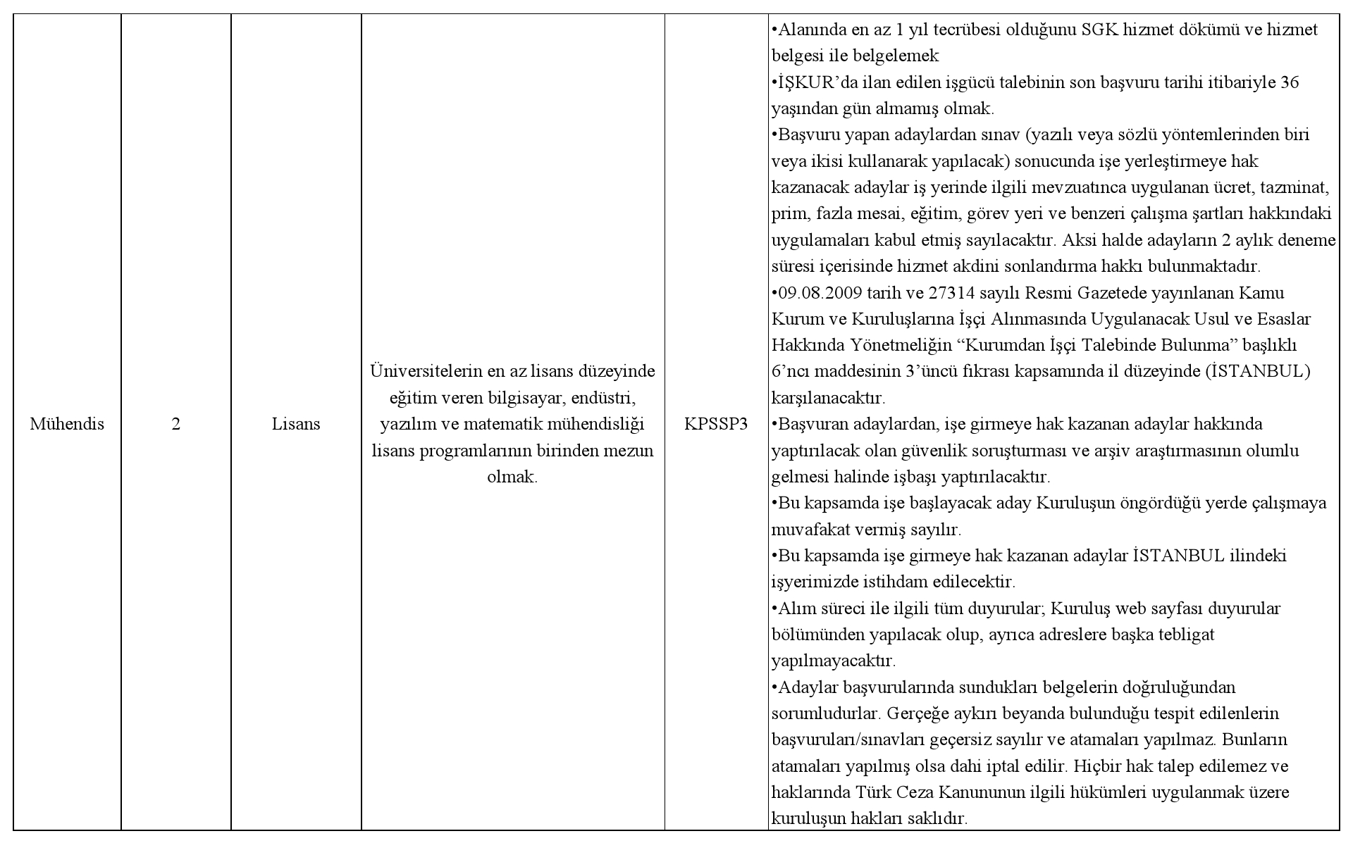 Açıklama 1- Kuruluşumuza gönderilen aday listelerinde, ilan edilen başvuru şartlarını sağlamayan adayların başvuruları geçersiz sayılacaktır.