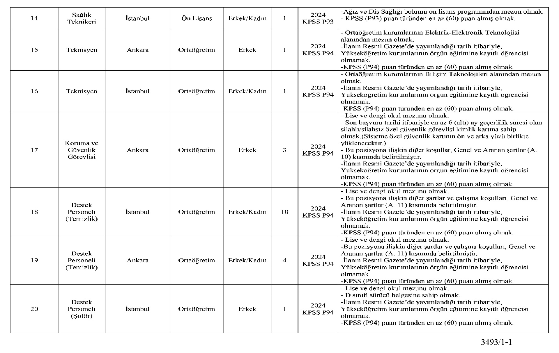 11. Destek Personeli kadrosuna başvuracak adaylar için aranan şartlar ile yapılacak iş ve görevler;