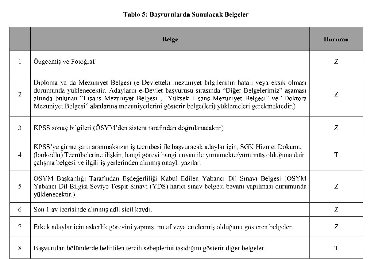 . Tablo 3'te yer alan bölüm dışındaki bölümlerden veya yurtdışındaki üniversitelerin denk bölümlerinden mezun olup başvuru yapabilen adayların başvurularının değerlemeye alınabilmesi için, e-Devlet başvurusu sırasında "Diğer Belgelerimiz" aşaması altında bulunan "Denklik Gösterir Belge" alanına ilgili dokümanı mutlaka yüklemeleri gerekmektedir.