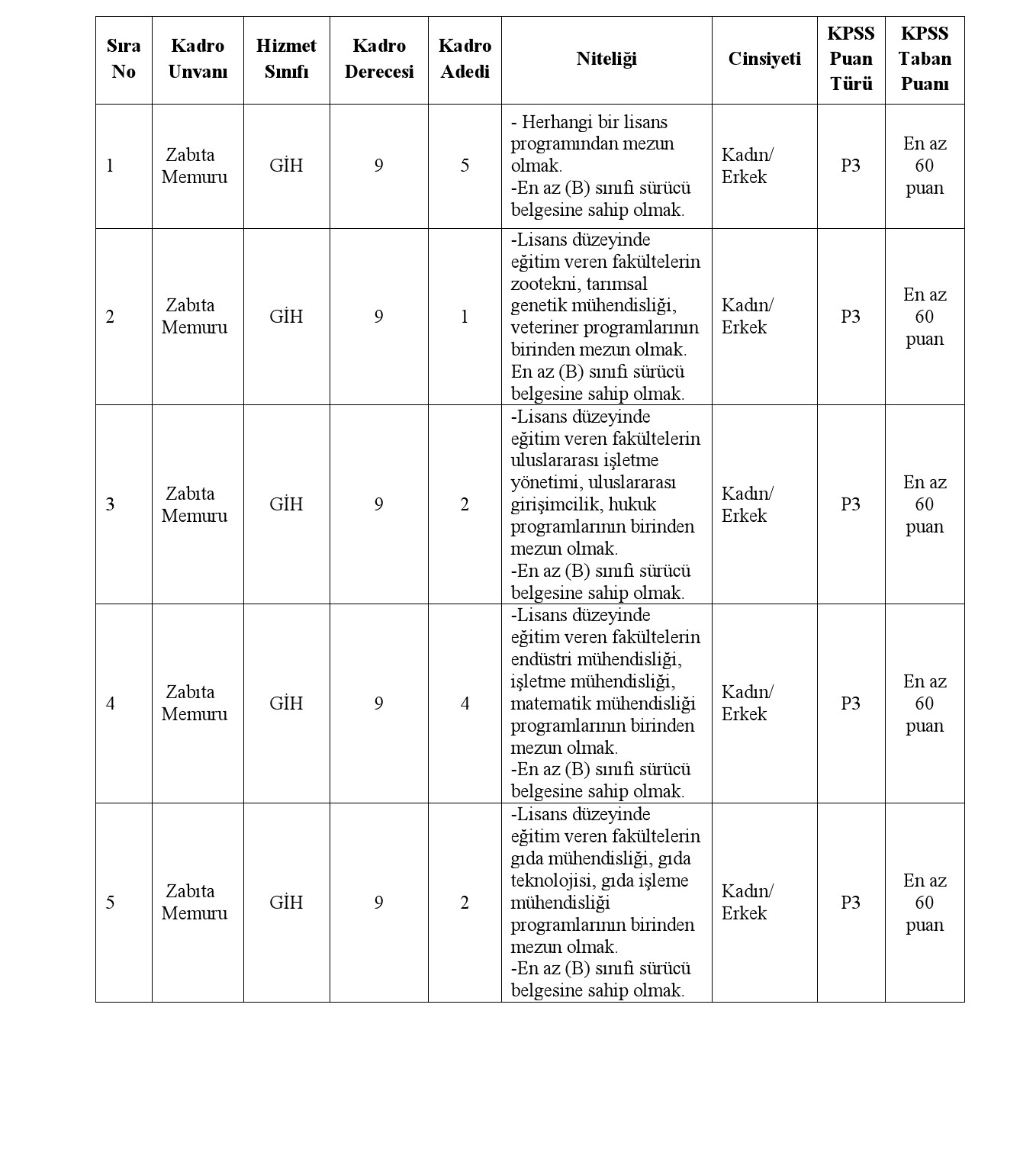 İLK DEFA ATANMAK ÜZERE ZABITA MEMURU ALIMI İLANI