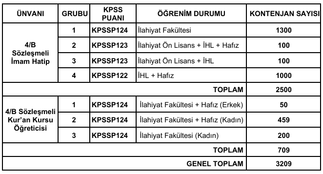 Diyanet İşleri Başkanlığı Taşra Teşkilatında münhal bulunan 4/B sözleşmeli