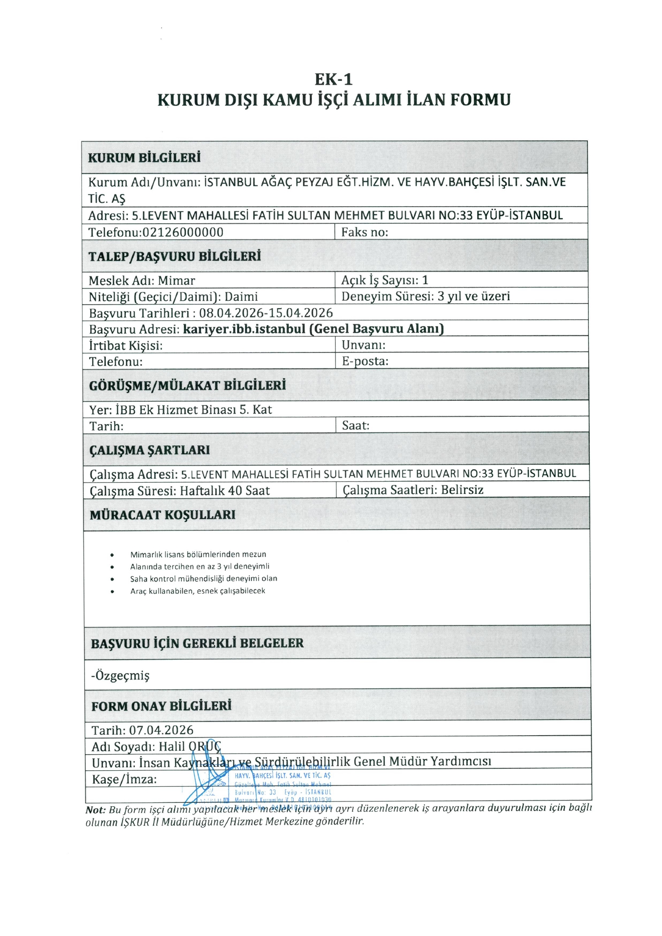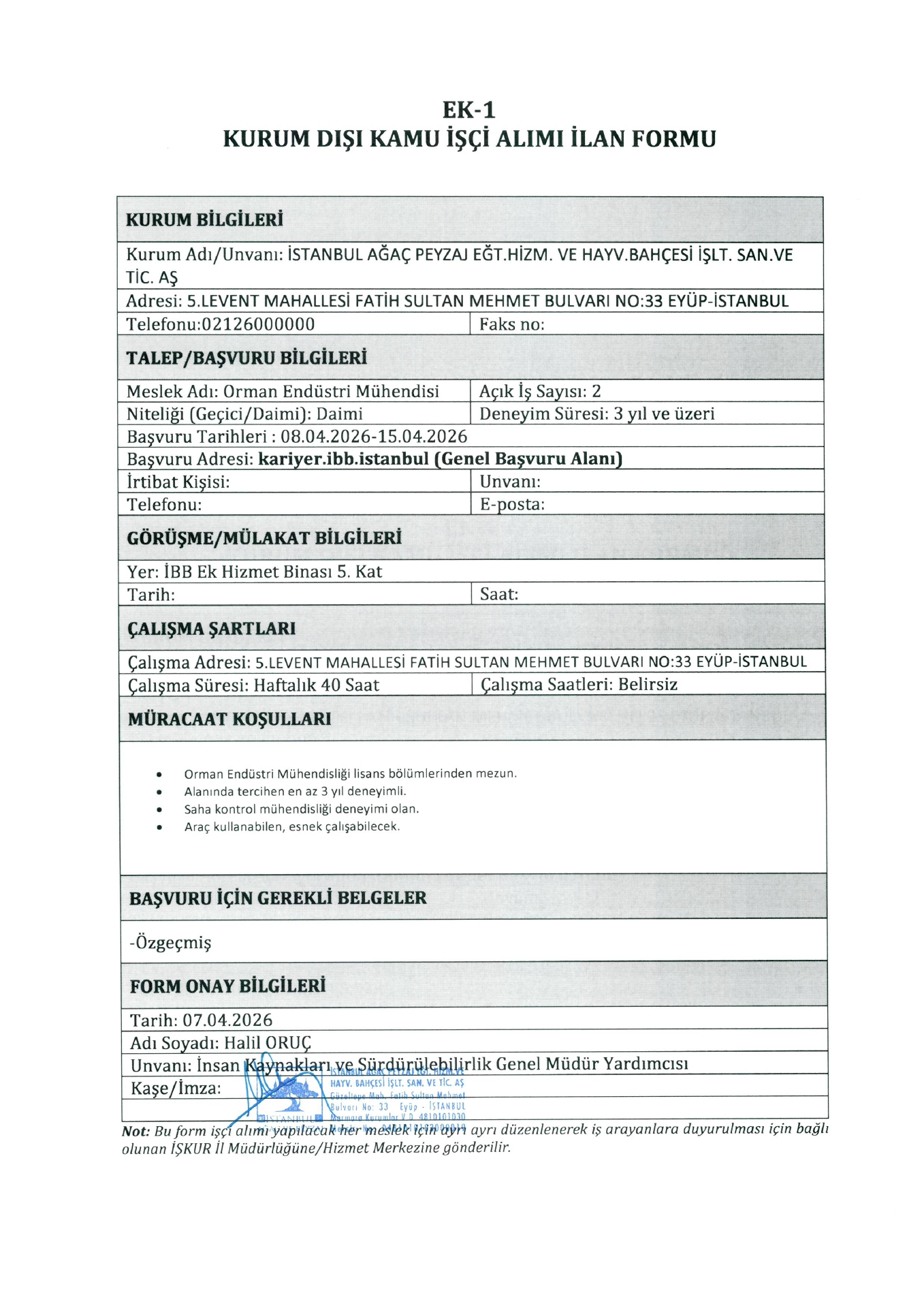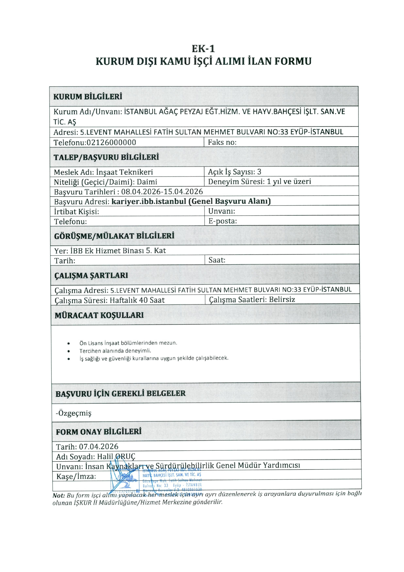 İstanbul Ağaç Peyzaj Hizmetleri 6 İşçi Alacak. Son başvuru tarihi 14 Nisan 2026