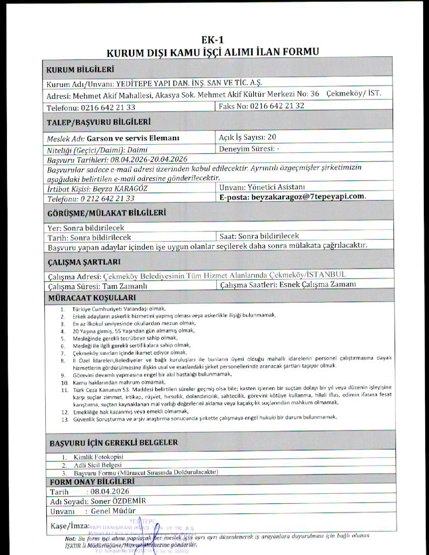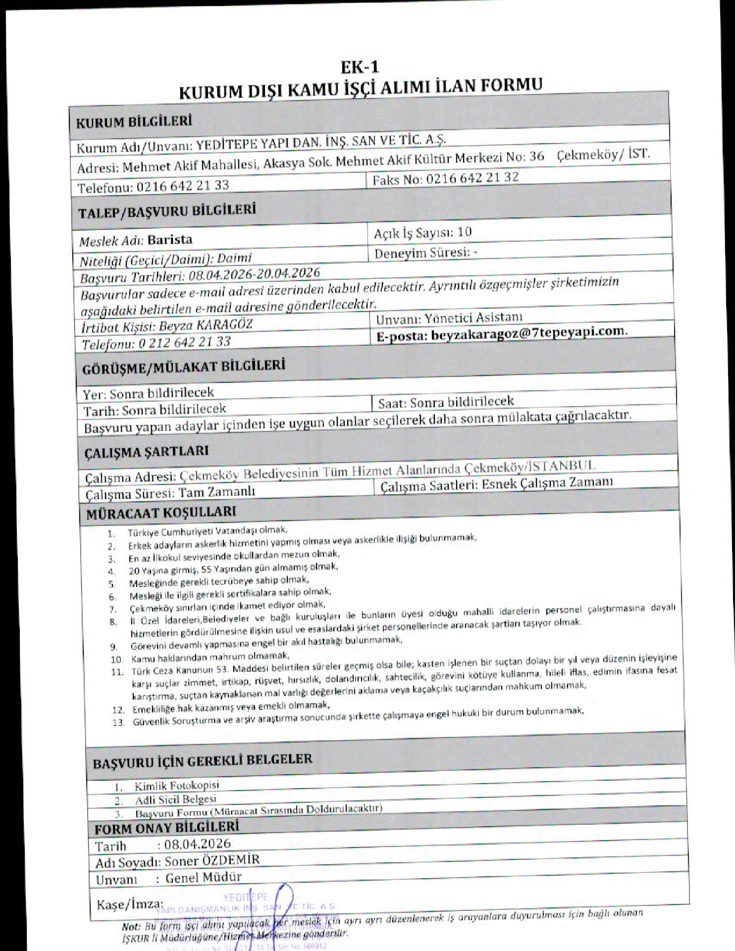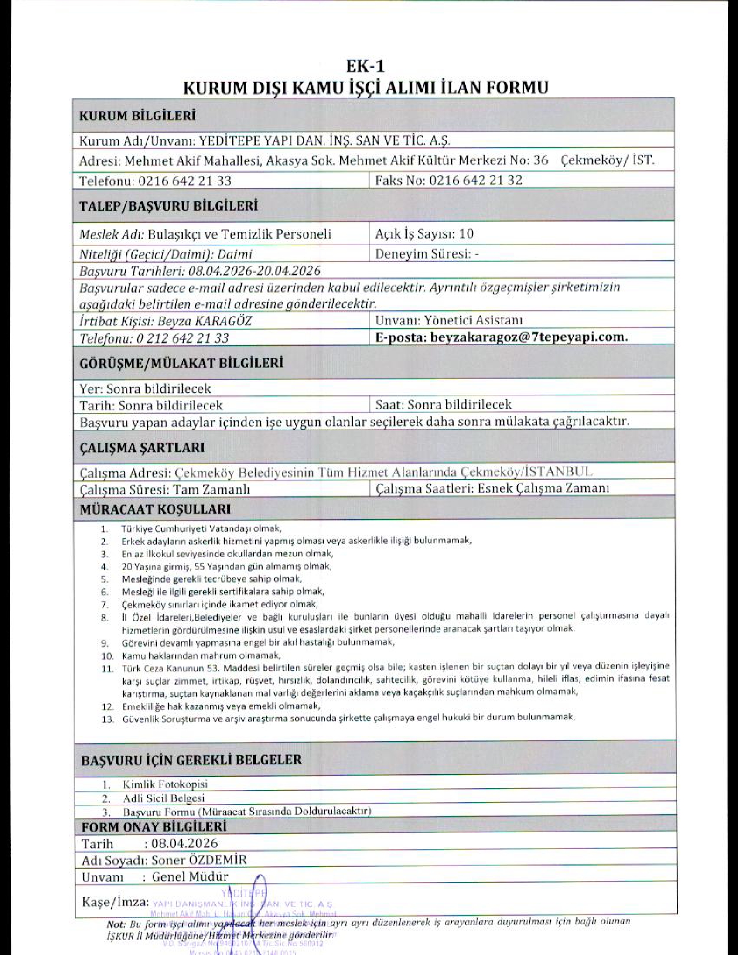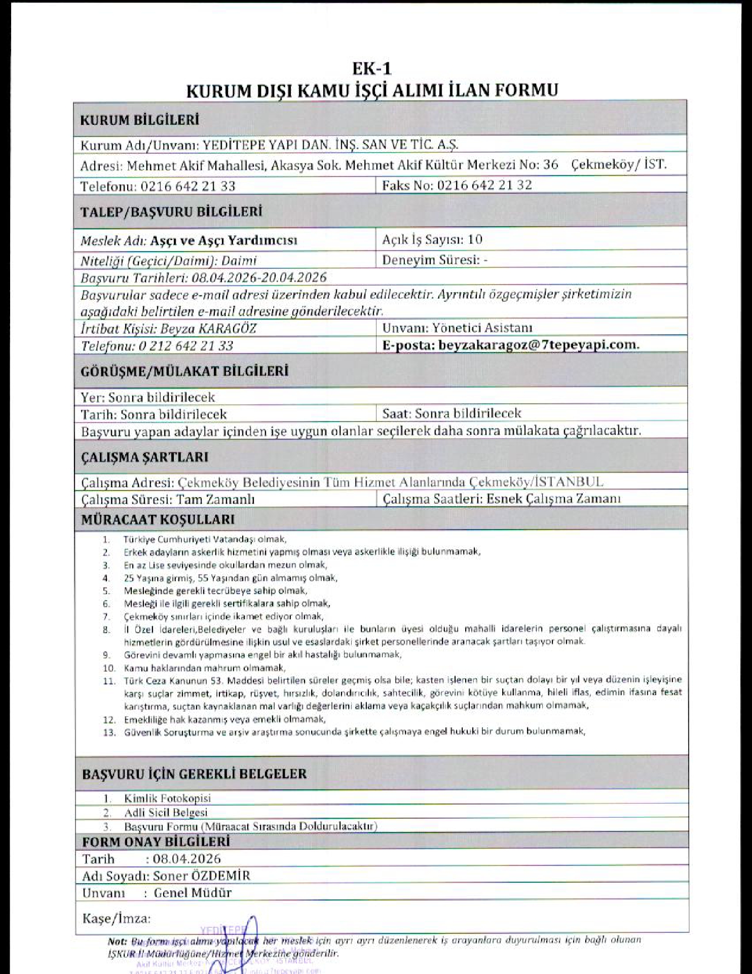 Ana sayfaDaimi İşçi İlanları İstanbul Yeditepe Yapı 50 İşçi Alacak İstanbul Yeditepe Yapı 50 İşçi Alacak. Son başvuru tarihi 20 Nisan 2026 Kaynak : İşkur İlan Giriş : 09 Nisan 2026 23:27, Son Güncelleme : 09 Nisan 2026 23:45 Yazdır Yorumlar (0) Abone Ol