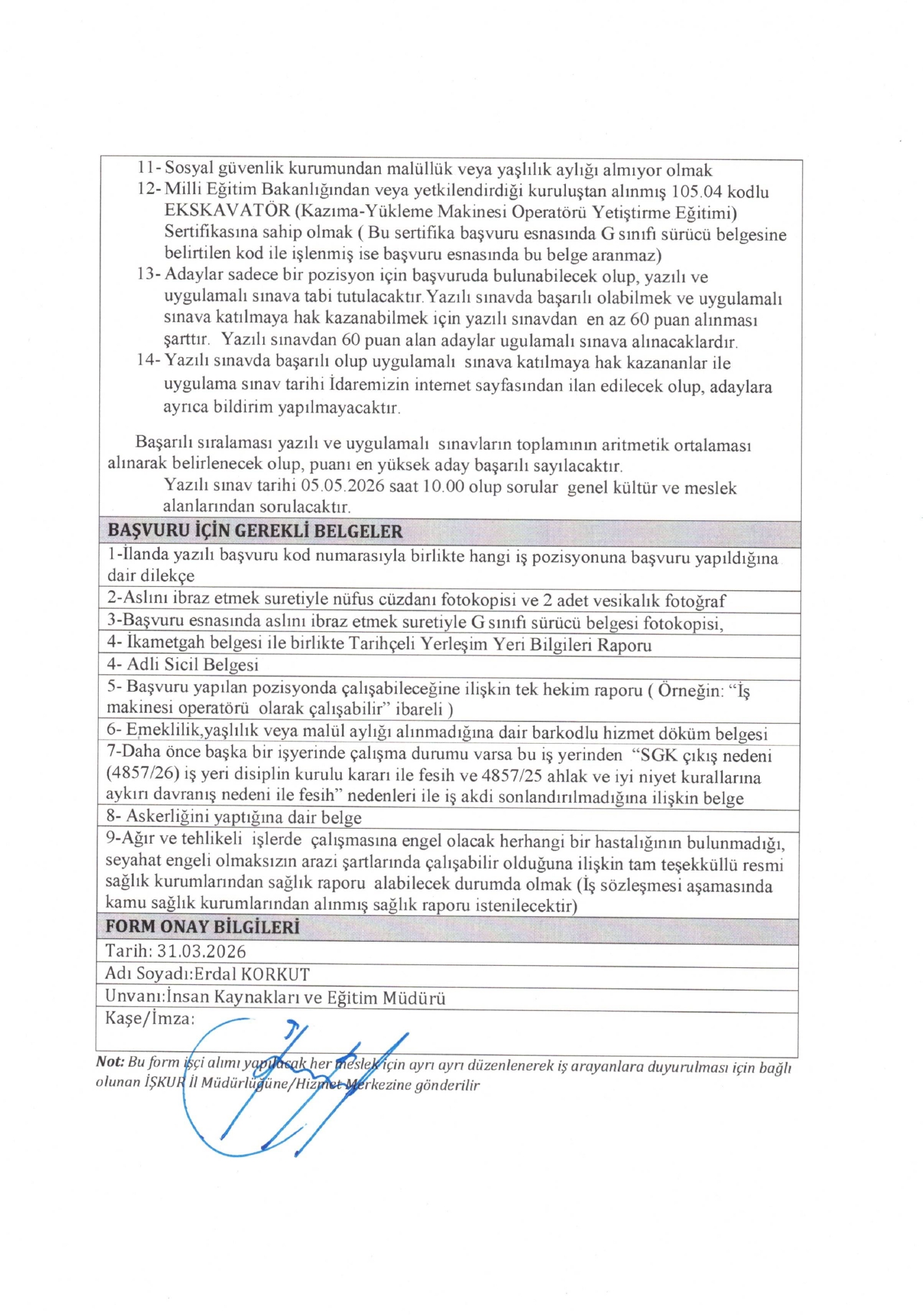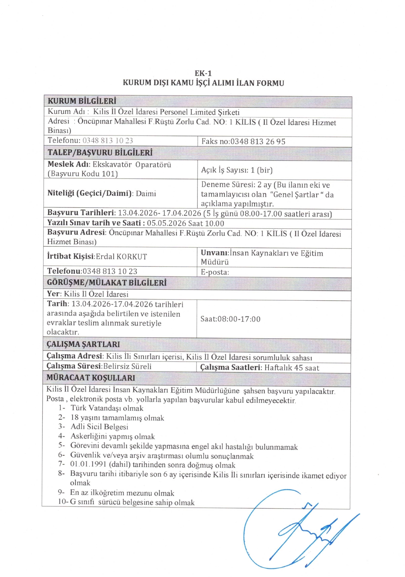 Kilis İl Özel İdaresi 1 İşçi Alacak. Son başvuru tarihi 17 Nisan 2026