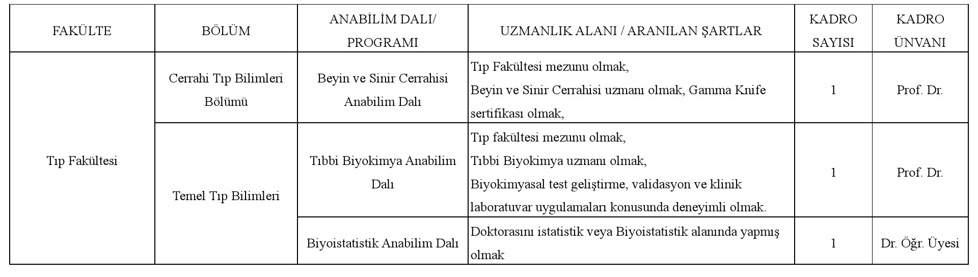 ÖĞRETİM ÜYESİ ALIM İLANI