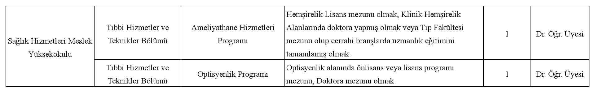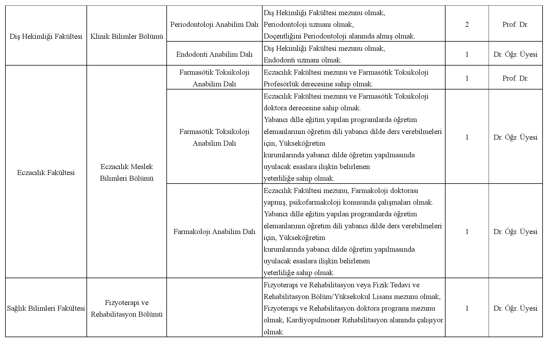 Üniversitemize 2547 sayılı Yükseköğretim Kanunu'nun ve Öğretim Üyeliğine Yükseltilme ve Atanma Yönetmeliği'nin ilgili maddeleri uyarınca "Öğretim Üyesi" alınacaktır.