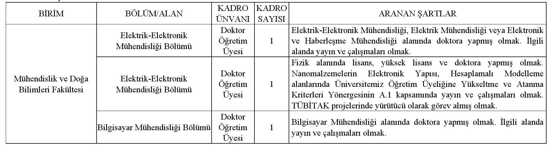 ÖĞRETİM ÜYESİ ALIM İLANI