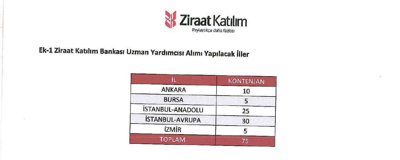 Ziraat Katılım Bankası 75 Uzman Yardımcısı Alacak. Son başvuru tarihi 24 Nisan 2026