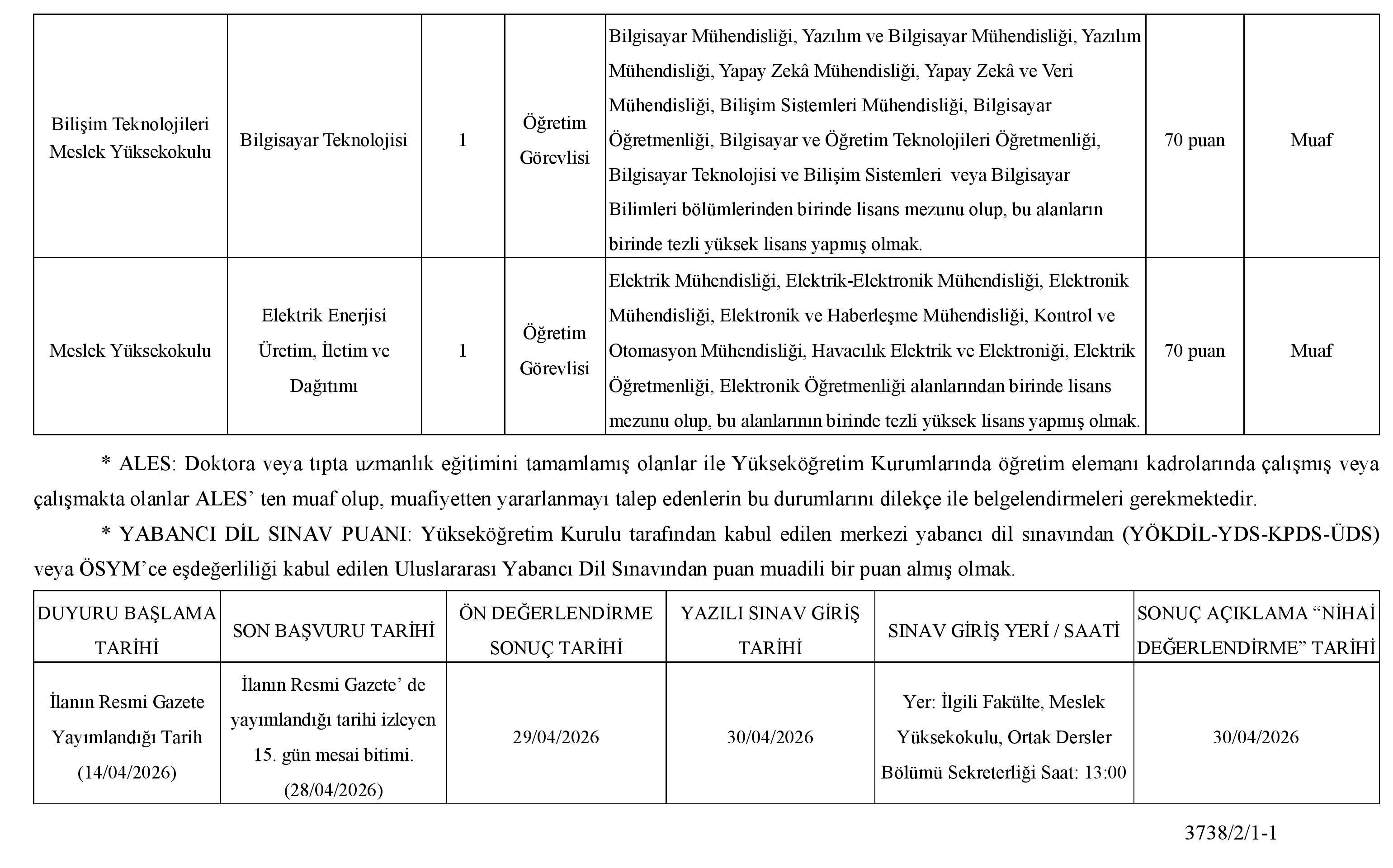 ÖĞRETİM ÜYESİ ALIM İLANI