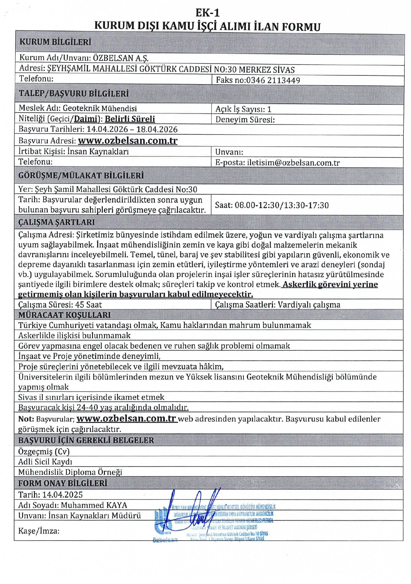 Ana sayfaDaimi İşçi İlanları Sivas Belediyesi 1 İşçi Alacak Sivas Belediyesi 1 İşçi Alacak. Son başvuru tarihi 18 Nisan 2026 Kaynak : İşkur İlan Giriş : 14 Nisan 2026 23:16, Son Güncelleme : 14 Nisan 2026 23:23 Yazdır Yorumlar (0) Abone Ol