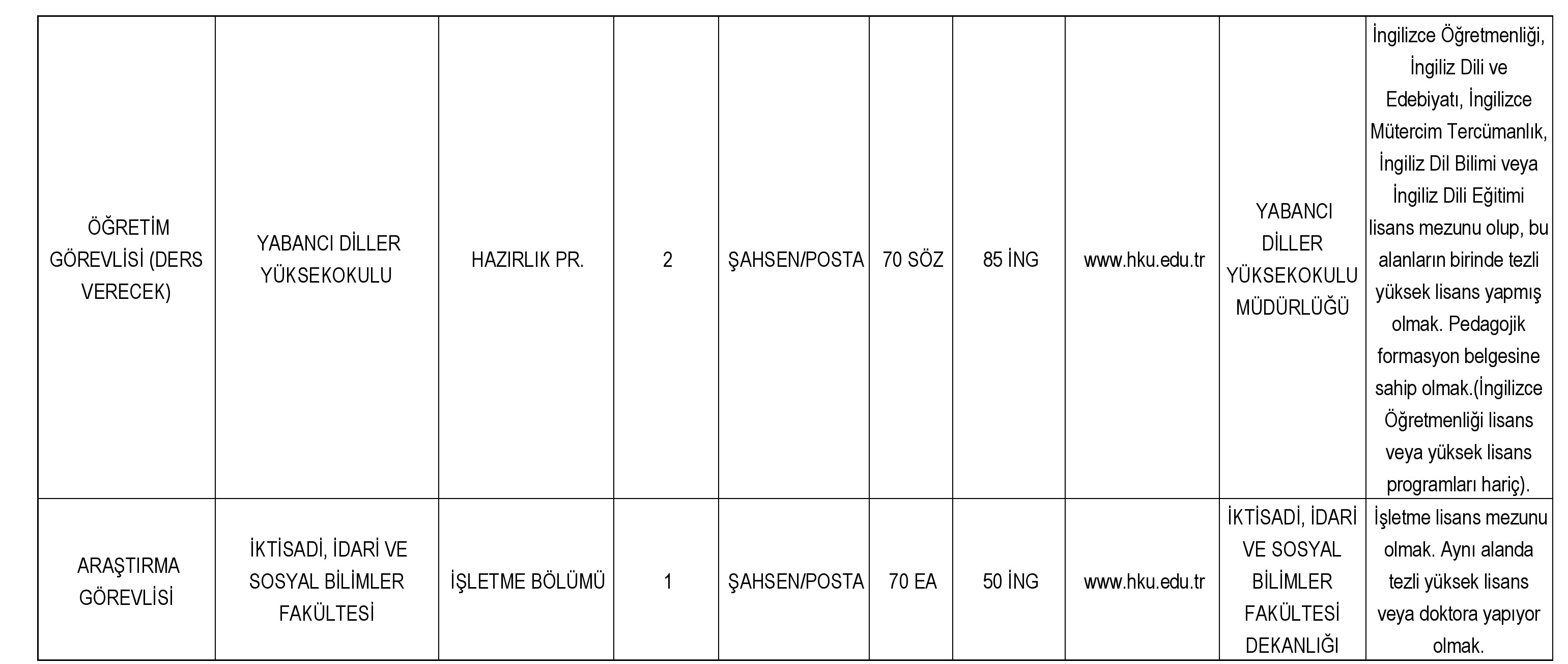 . İhtiyaç duyulması halinde; adayları ilgilendiren başvuru ve atama süreci ile ilgili tüm bilgilendirmeler Üniversitemiz Personel Müdürlüğü web sayfasından https://personel.hku.edu.tr/ yapılacak olup, ayrıca yazılı