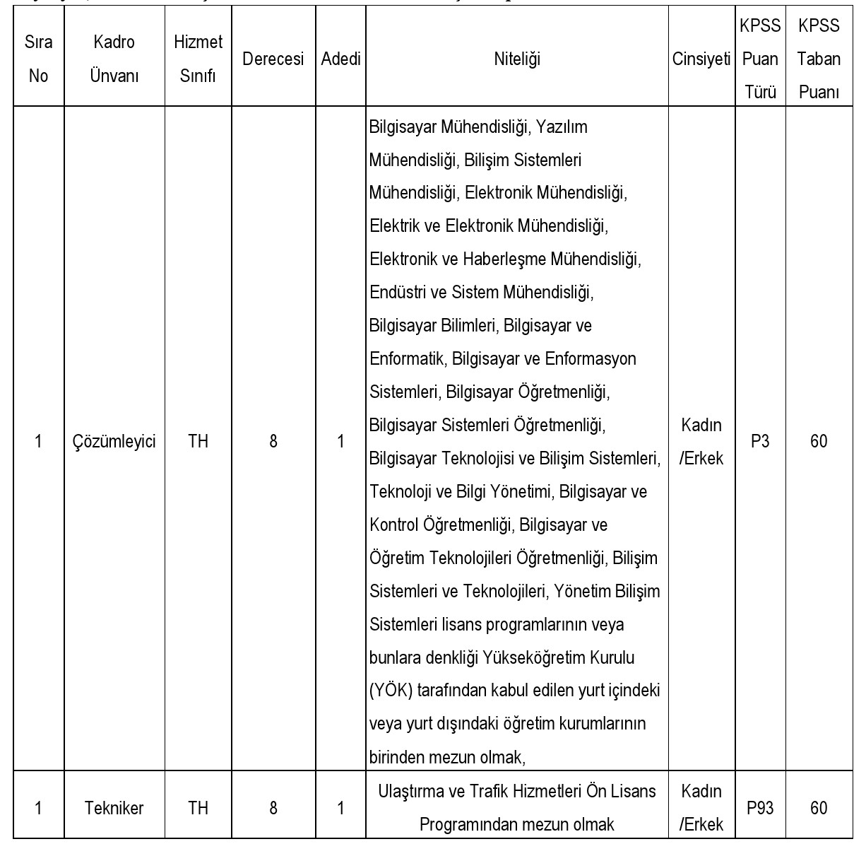 1. BAŞVURU GENEL ŞARTLARI: İlan edilen çözümleyici ve tekniker kadrosuna atanmak için başvuracak adayların, 657 sayılı Devlet Memurları Kanunu'nun 40 ıncı maddesi ile 48 inci maddesinin (A) fıkrasında belirtilen aşağıdaki genel şartlara sahip olmaları gerekmektedir.