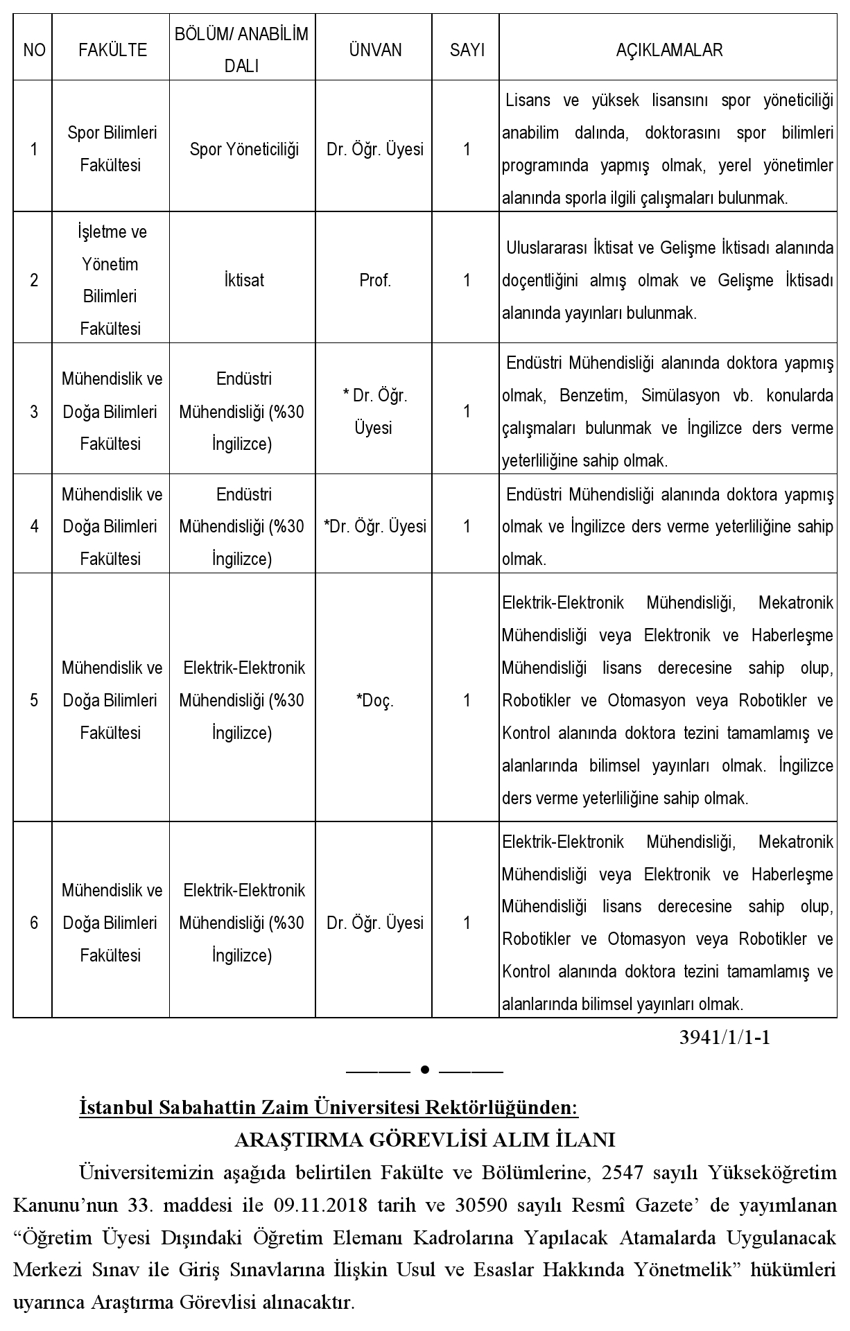 ÖĞRETİM ÜYESİ ALIM İLANI