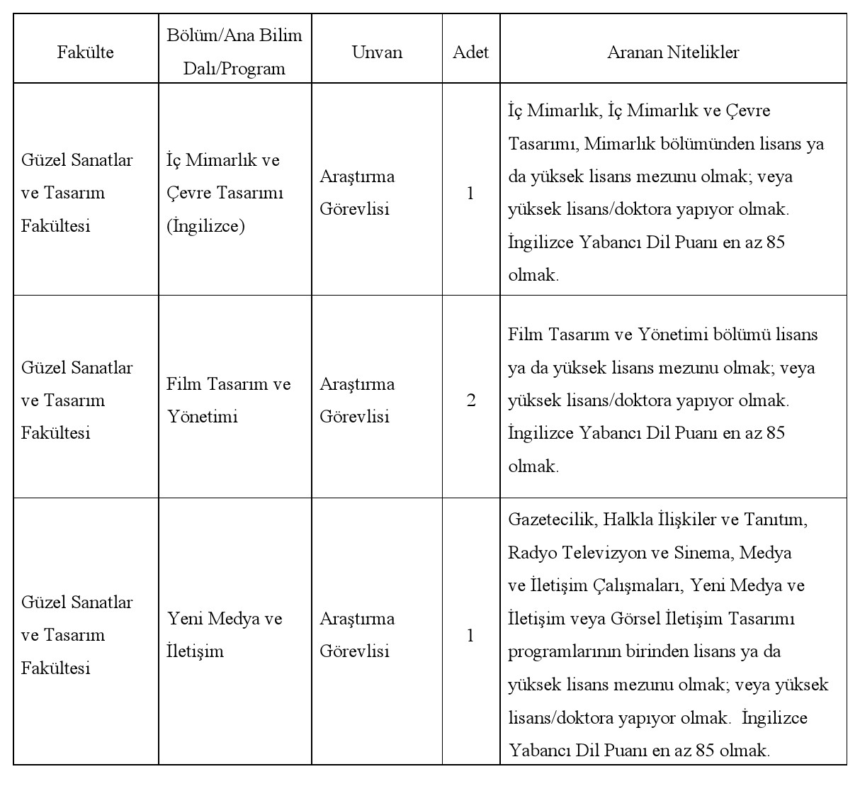 Öğretim Görevlisi ve Araştırma Görevlisi alım ilanımız için;
