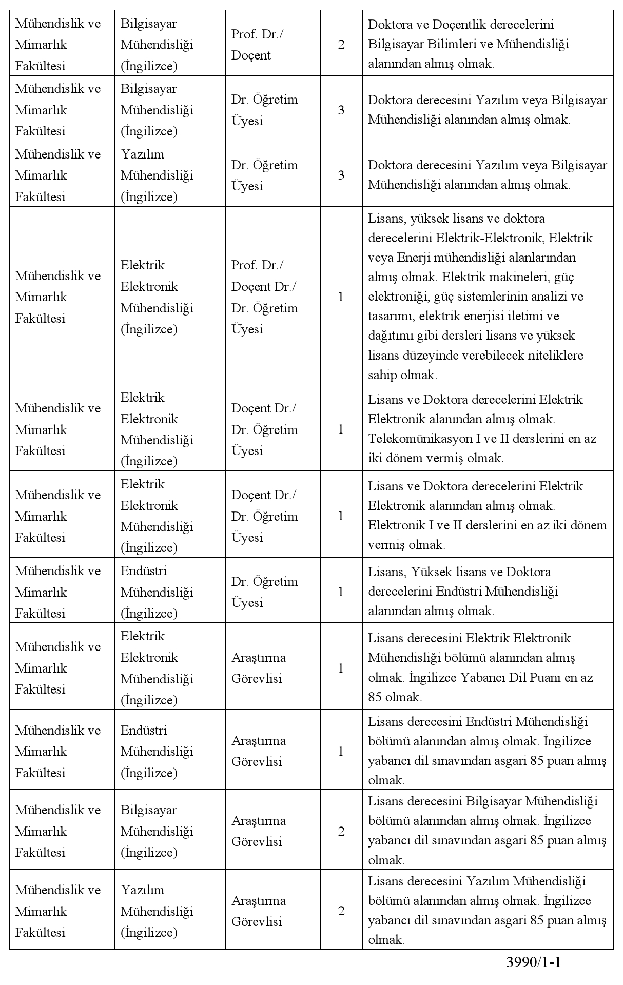 . İngilizce eğitim veren bölümler bölüm/program kısmında parantez içinde belirtilmiştir. Bu bölümler için İngilizce dilinden en az 85 puan alındığını gösterir, YÖK tarafından Kabul Edilen Merkezi Yabancı Dil Sınavı veya Eşdeğeri Kabul Edilen Sınav Sonuç Belgesine sahip olmak ya da "Yükseköğretim Kurumlarında Yabancı Dil Eğitim-Öğretimi ve Yabancı Dille Eğitim Öğretim Yapılmasında Uyulacak Esaslara İlişkin Yönetmelik" 8. Maddesini 7. Fıkrası koşullarını sağlamak gereklidir.