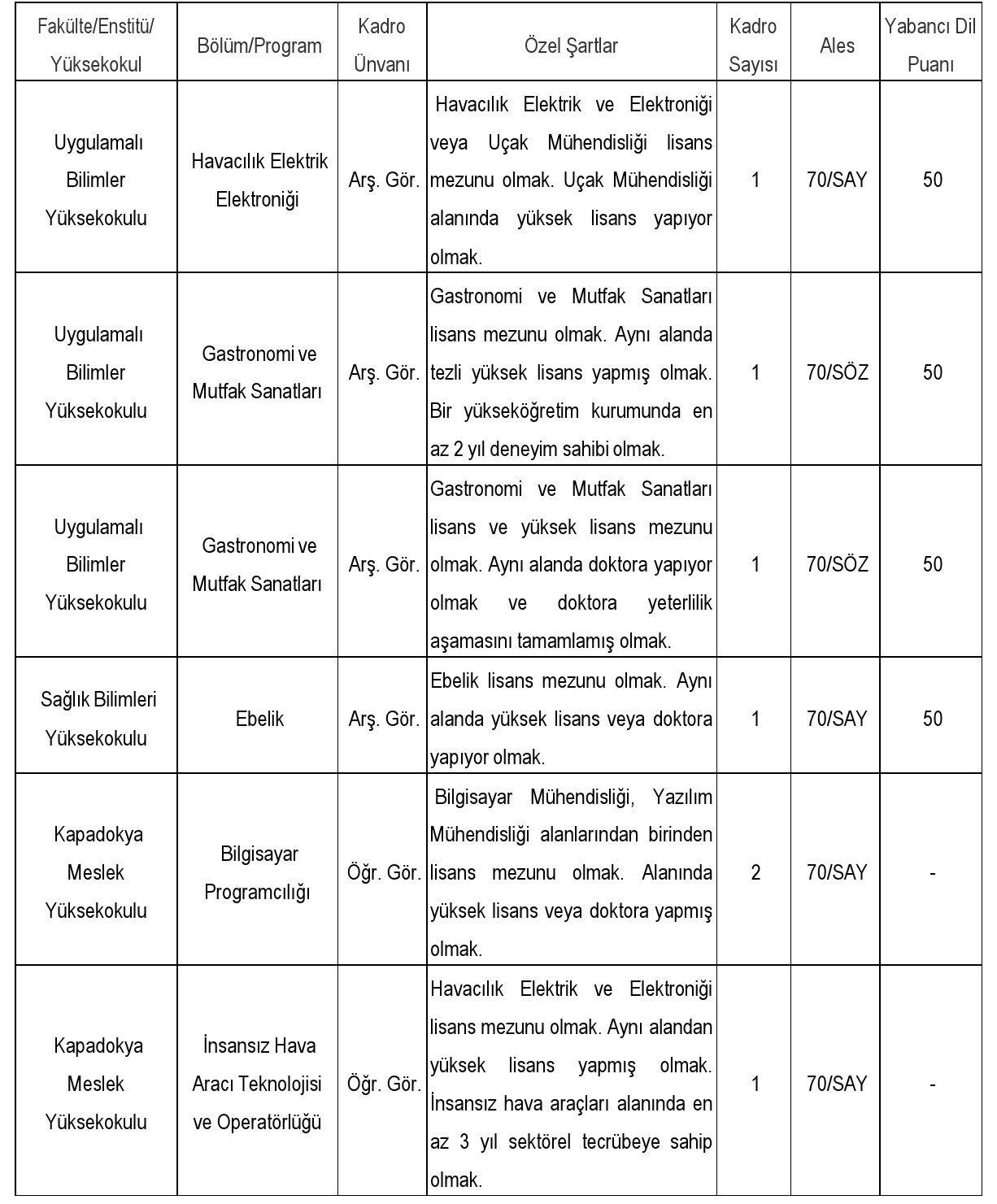 ÖĞRETİM ÜYESİ DIŞINDAKİ KADROLARA PERSONEL ALIM İLANI