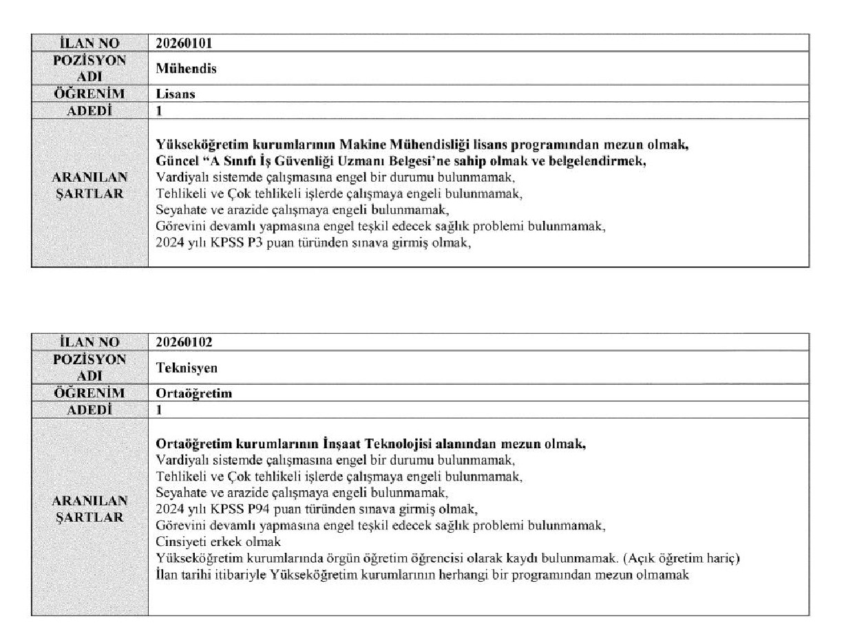 SÖZLEŞMELİ PERSONEL ALIM İLANI (2026 - 1)