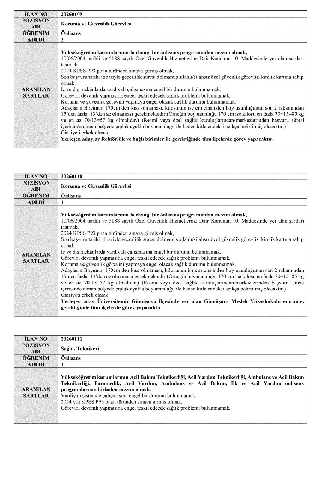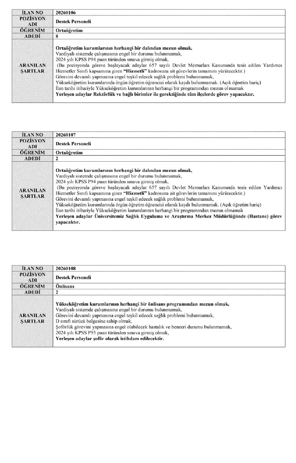 Üniversitemizde 657 sayılı Devlet Memurları Kanunu'nun 4 üncü maddesinin (B) fıkrasına göre Sözleşmeli Personel olarak istihdam edilmek üzere 06.06.1978 tarihli ve 7/15754 sayılı Bakanlar Kurulu Kararı ile yürürlüğe konulan Sözleşmeli Personel Çalıştırılmasına İlişkin Esasların Ek 2 nci maddesinin (b) fıkrasına göre 2024 KPSS (B) grubu puan sırası esas alınmak suretiyle sözleşmeli personel alınacaktır.