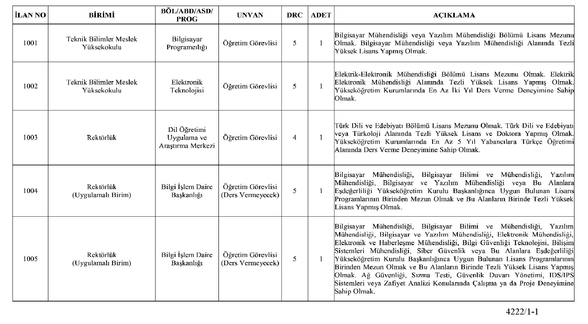 - Gerekli görülmesi halinde ilanın her safhasında Rektörlüğümüzce ilanda değişiklik ve ilan iptali yapılabilir.