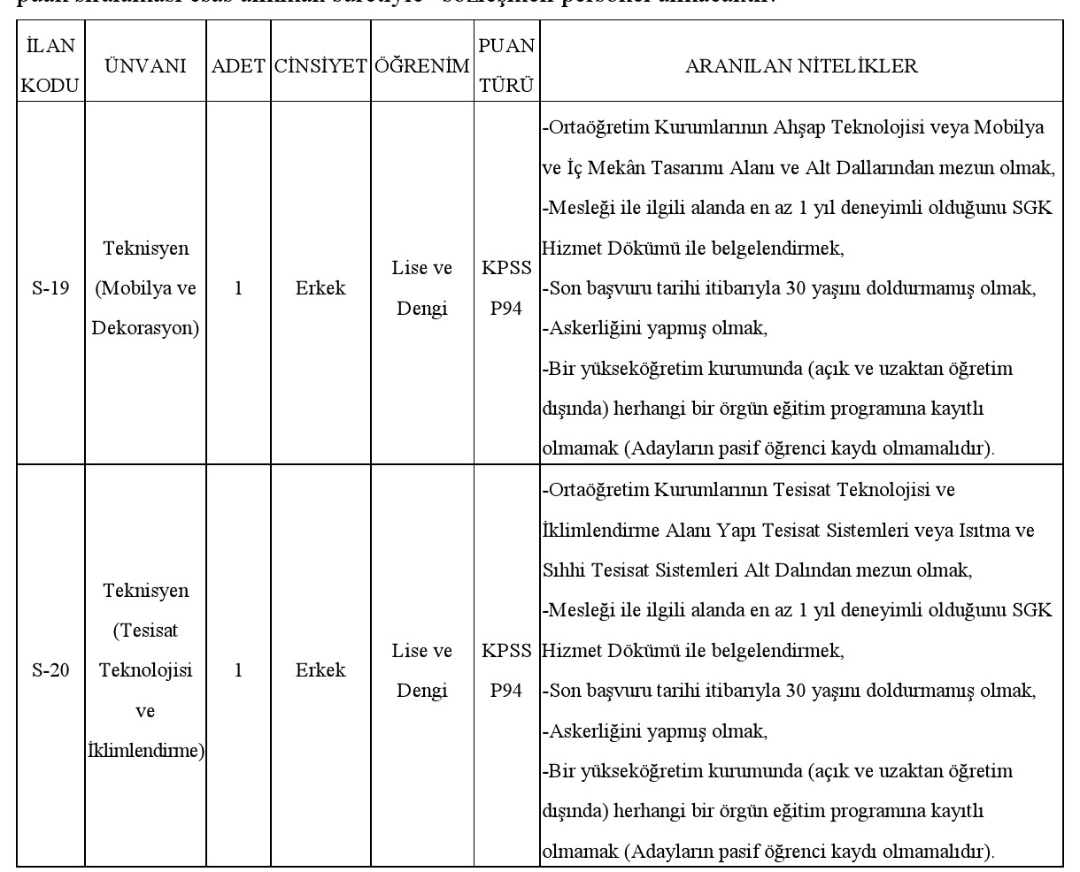 4/B SÖZLEŞMELİ PERSONEL ALIM İLANI