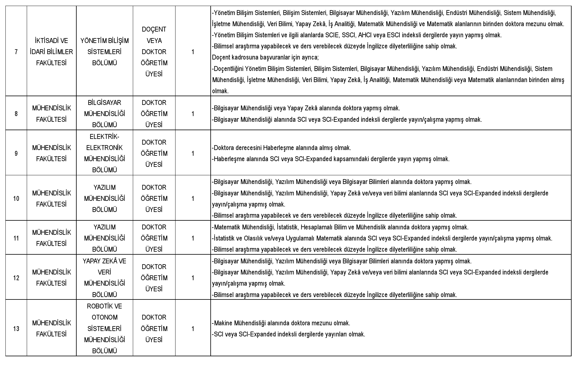 ÖĞRETİM ÜYESİ ALIM İLANI