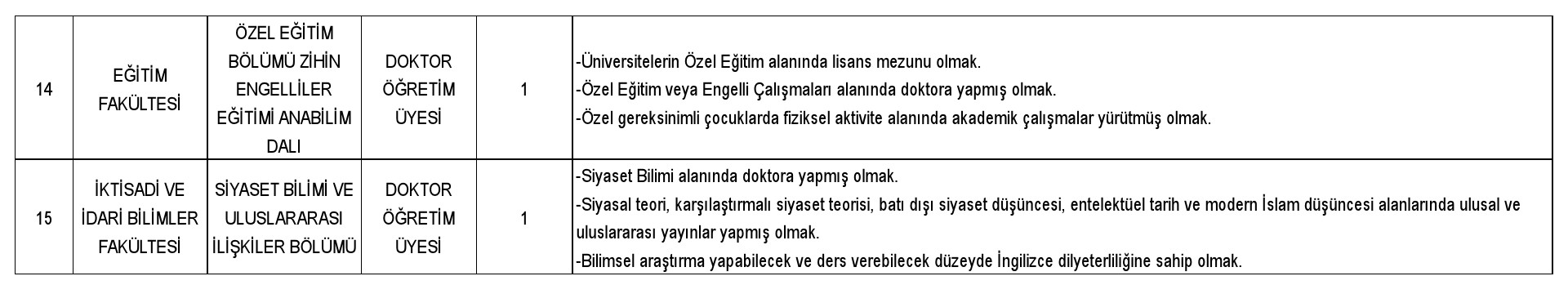 ÖĞRETİM ELEMANI ALIM İLANI